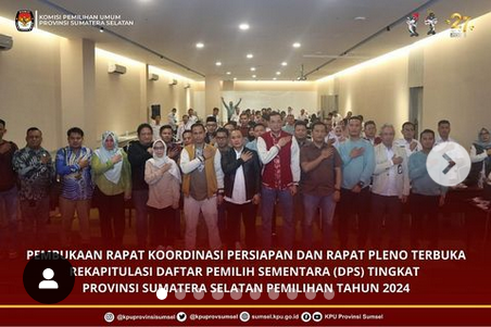 Pembukaan Rapat Koordinasi Persiapan Dan Rapat Plemo Terbuka Rekapitulasi Daftar Pemilih Sementara (DPS) Tingkat Provinsi Sumatera Selatan Pemilihan Tahun 2024