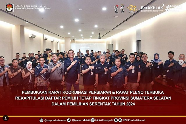 Pembukaan Rapat Koordinasi Persiapan & Rapat Pleno Terbuka Rekapitulasi Daftar Pemilih Tetap Tingkat Provinsi Sumatera Selatan Dalam Pemilihan Serentak Tahun 2024