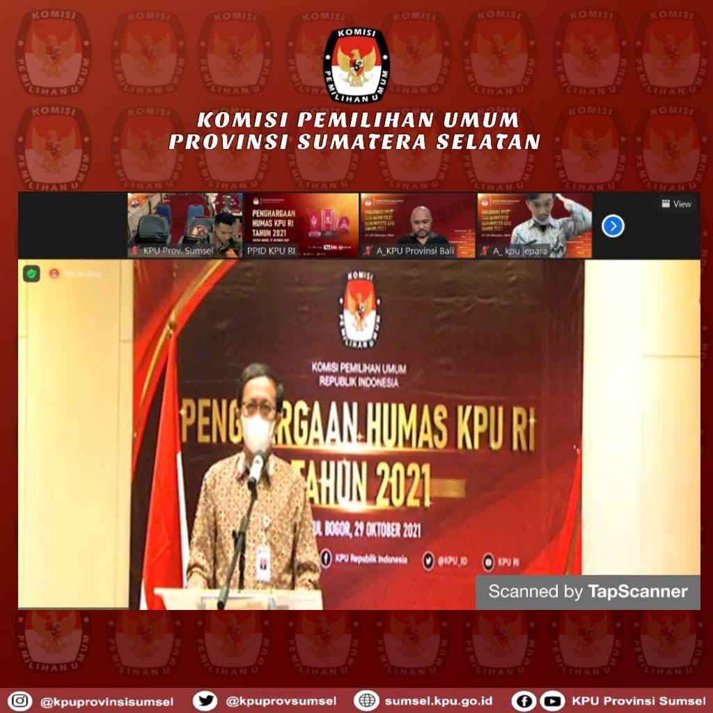 Penghargaan Humas KPU Th. 2021 sekaligus penutupan Rakornas PPID & Warkshop pada Tahun 2021.