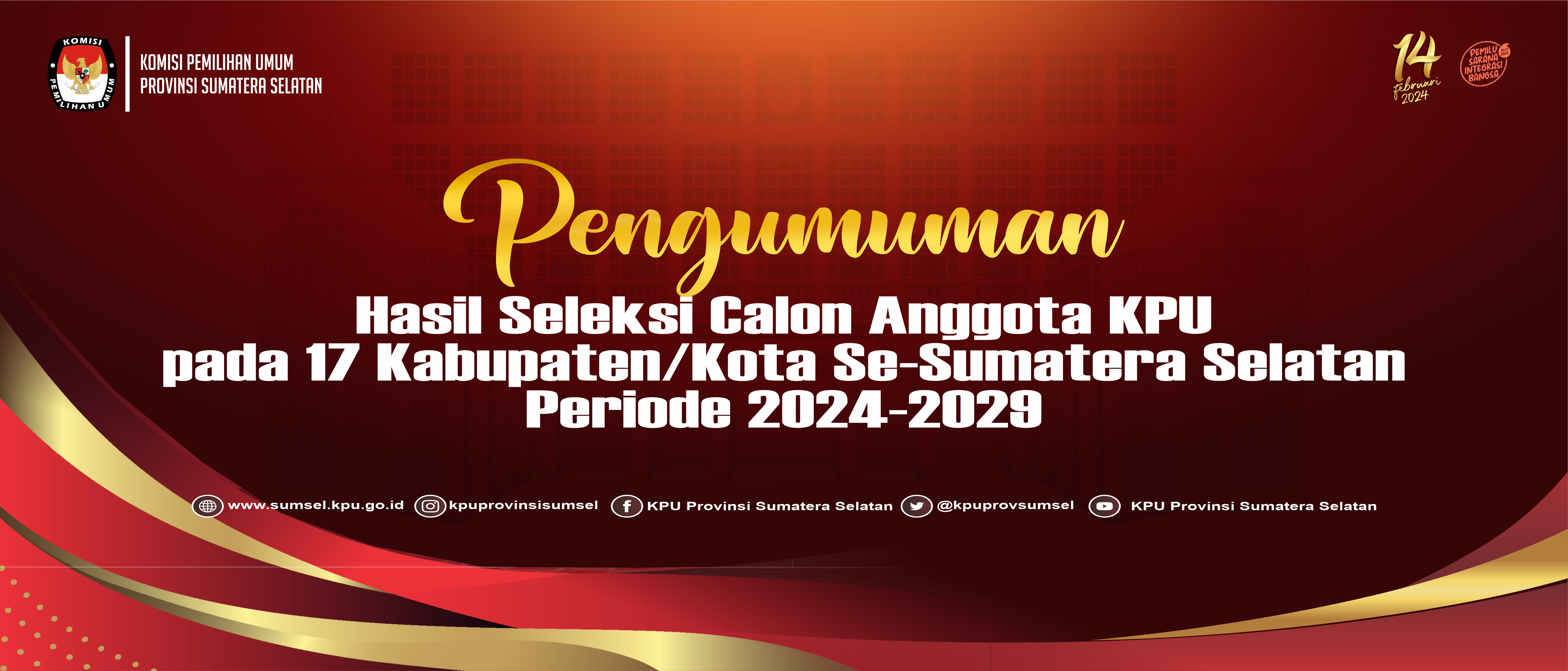 Pengumuman Hasil Seleksi Calon Anggota KPU pada 17 Kabupaten/Kota se-Sumsel Periode 2024-2029