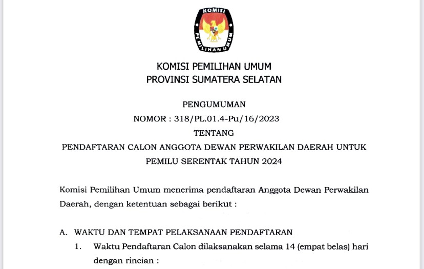 PENDAFTARAN CALON ANGGOTA DEWAN PERWAKILAN DAERAH UNTUK PEMILU SERENTAK TAHUN 2024