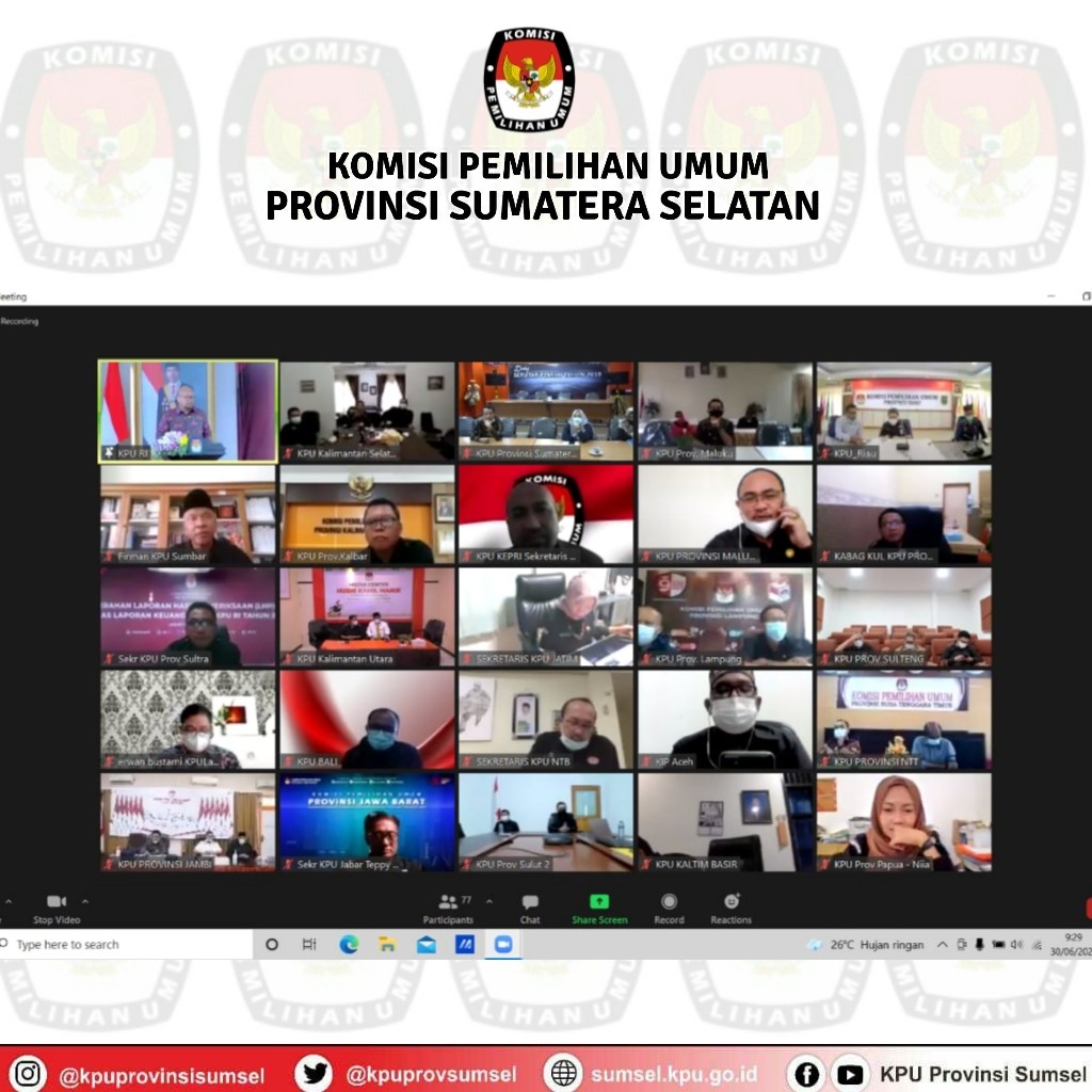 Selasa, 29 Juni 2021 Ketua KPU Provinsi Sumatera Selatan dan Sekretaris KPU Provinsi Sumatera Selatan, mengikuti kegiatan Penyerahan LHP atas Laporan Keuangan KPU RI Tahun 2020, yang diselenggarakan oleh KPU RI melalui aplikasi Zoom Cloud Meeting. #KPUMelayani #KPURI