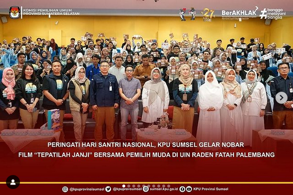 peringan hari santri nasional KPU Sumsel gelar nonton bareng film "Tepatilah Janji" bersama Pemilih muda di UIN Raden Fatah Palembang