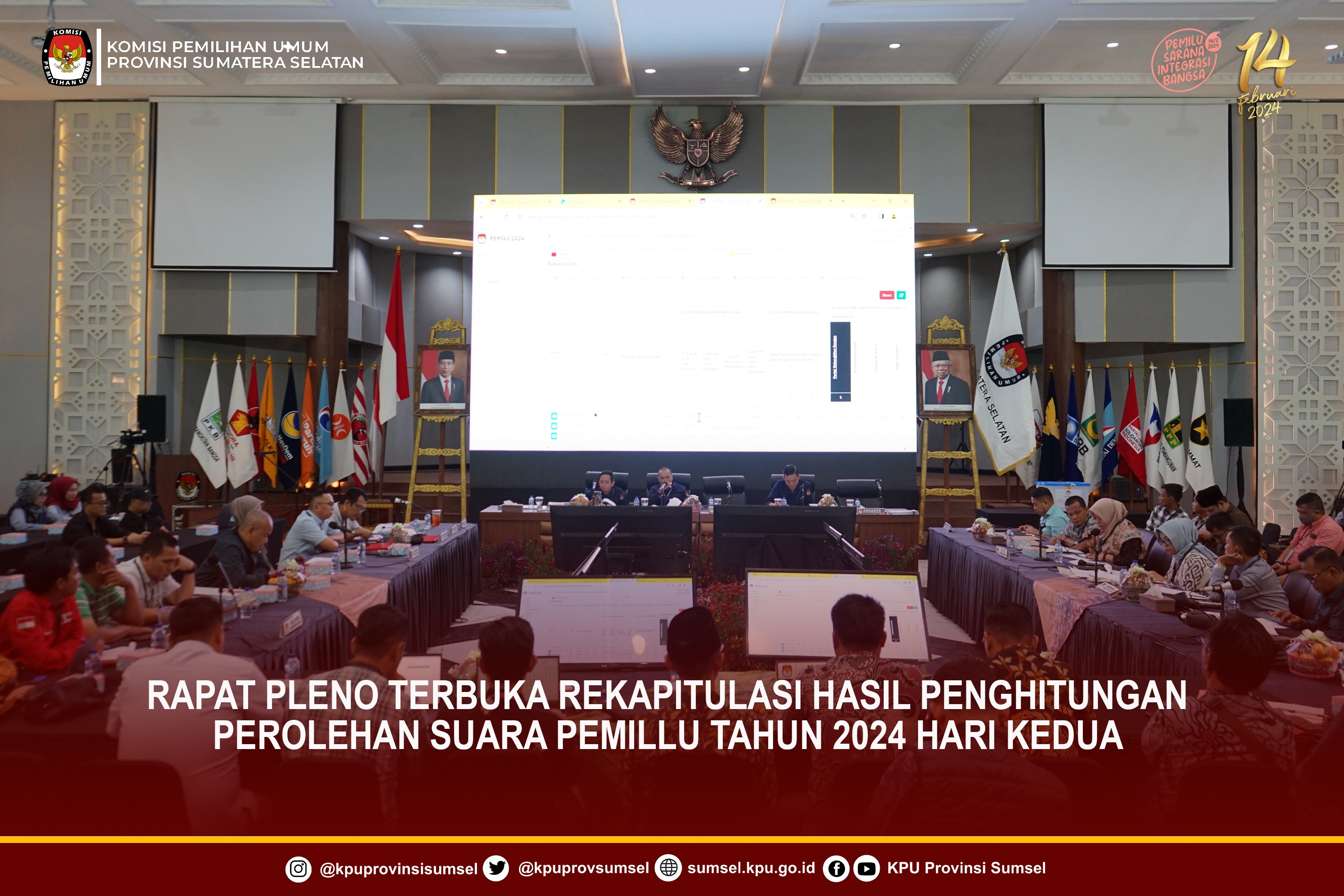 Perkembangan Hari ke-2 Rapat Pleno Terbuka Rekapitulasi Hasil Penghitungan Perolehan Suara Pemilu 2024 Tingkat Provinsi Sumsel