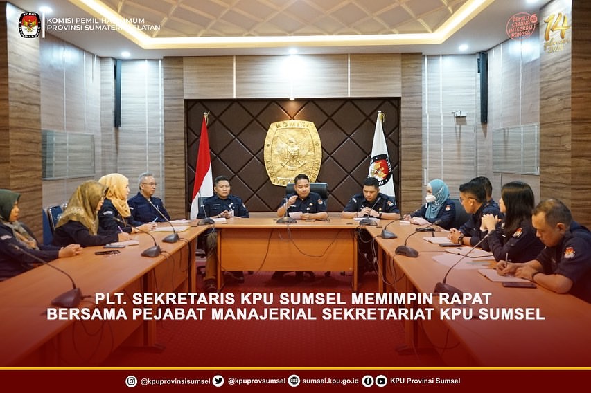 #Temanpemilih, Plt. Sekretaris KPU Sumsel, Bapak Eko Iswantoro memimpin rapat persiapan Pilkada bersama pejabat manajerial KPU Sumsel, Selasa (16/4/2024).