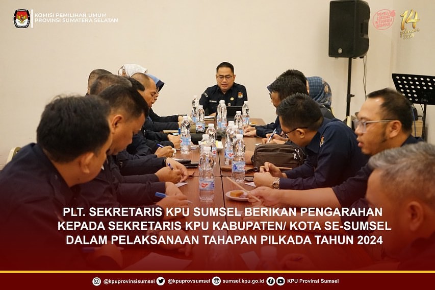 Plt. Sekretaris KPU SUMSEL Berikan Pengarahan kepada Sekretaris KPU Kabupaten/Kota Se-SUMSEL dalam Pelaksanaan Tahapan Pilkada Tahun 2024
