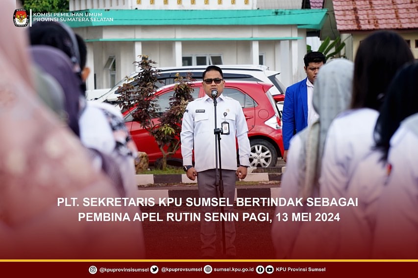 #Temanpemilih, #Temanpemilih Plt.Sekretaris KPU Provinsi Sumatera Selatan, Bapak Eko Iswantoro bertindak sebagai pembina apel rutin senin pagi di lingkungan sekretariat KPU Sumsel, (13/5/2024).