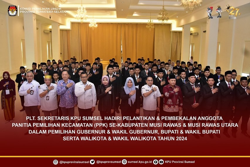 PLT. Sekretaris KPU Sumsel Hadiri Pelantikan & Pembekalan Anggota Panitia Pemilihan (PPK) Se-Kabupaten Musi Rawas & Musi Rawas Utara Dalam Pemilihan Pilkada Tahun 2024