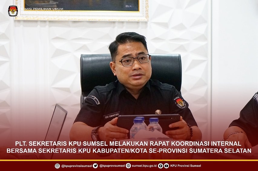 #Temanpemilih, Plt. Sekretaris KPU Sumsel, Bapak Eko Iswantoro melaksanakan rapat koordinasi internal bersama Sekretaris KPU Kabupaten/Kota se-Provinsi Sumatera Selatan secara daring, Rabu (29/5/2024).