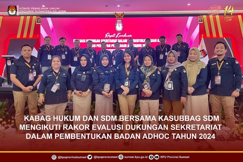 #Temanpemilih, Kabag Hukum dan SDM, Ahmad Ferdian dan Kasubbag SDM, Ibu Diana Sari mengikuti rapat koordinasi evaluasi dukungan sekretariat dalam pembentukan Badan Adhoc tahun 2024.
