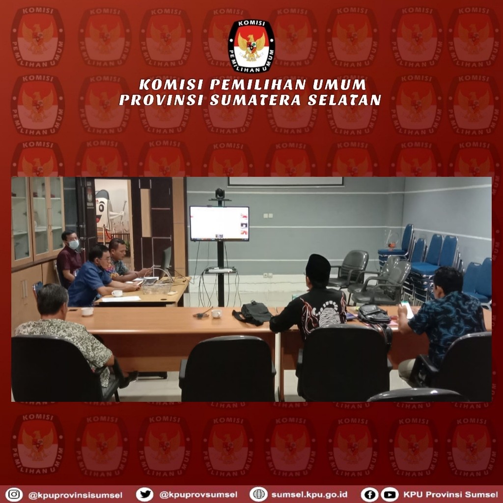 Anggota KPU Provinsi Sumatera selatan Hendri Daya Putra Divisi teknis Penyelenggara, Hendri Almawijaya Divisi Sosialisasi, Pendidikan Pemilih, Parmas dan SDM dan Hepriyadi Divisi Hukum dan Pengawasan Serta Kabag Hukum, Teknis dan Hupmas KPU Provinsi Sumatera Selatan Mengikuti Kegiatan Rapat Koordinasi Evaluasi Tahapan Kampanye dan Dana Kampanye Pemilihan Gubernur, Bupati dan Walikota Tahun 2020. Rapat dilaksanakan secara virtual melalui zoom Meeting yang di Ikuti oleh KPU Provinsi se-Indonesia.