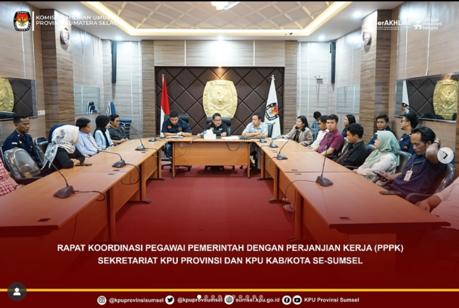 #Temanpemilih Sekretaris KPU Provinsi Sumatera Selatan, Bapak Eko Iswantoro melaksanakan rapat bersama 99 Pegawai dengan Perjanjian Kerja (PPPK) Tahap I dan 59 PPPK Tahap II tahun 2024 Sekretariat KPU Provinsi dan KPU Kabupaten/ Kota se-Sumatera Selatan secara hybrid, Jum’at (11/7/2025).