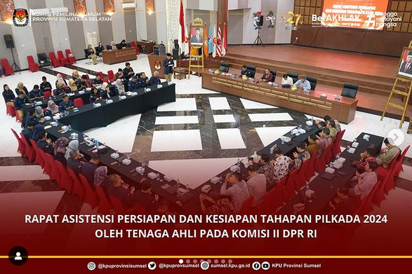 #Temanpemilih KPU Sumsel melaksanakan rapat asistensi kesiapan tahapan Pilkada 2024 oleh Tenaga Ahli pada Komisi II DPR RI, Bapak Abrar Amir, Bapak Satya Alvino Pinandito serta Bapak Franditya Utomo, Sabtu (14/9/2024).