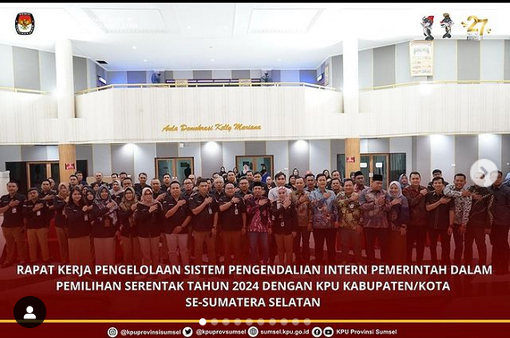 #Temanpemilih KPU Provinsi Sumatera Selatan rapat kerja pengelolaan Sistem Pengendalian Intern Pemerintah dalam Pemilihan (SPIP) serentak tahun 2024 bersama KPU Kabupaten/Kota se-Sumatera Selatan, Rabu (7/8/2024).