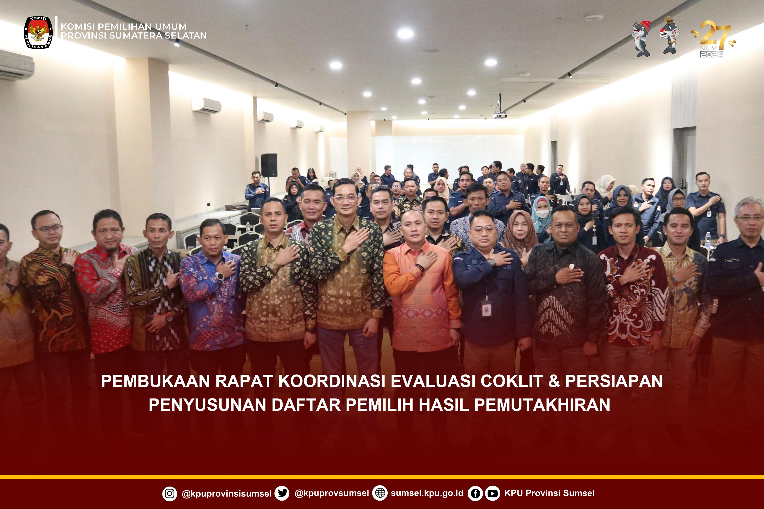Berdasarkan rekapitulasi sementara data dari E-Coklit, jumlah Pemilih di Provinsi Sumatera Selatan yang telah dicoklit berjumlah 6.315.011 pemilih. “Tentu angka ini perlu di kalibrasi lagi dengan melakukan proses penyusunan hasil Pemutakhiran yang akan dilakukan dari tingkat PPS hingga tingkat KPU Kabupaten/Kota” tuturnya.