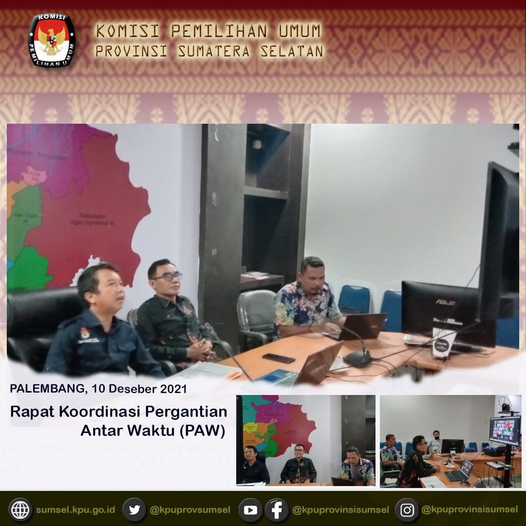 #TemanPemilih, KPU Provinsi Sumatera Selatan Menggelar Acara Rapat Koordinasi Penggantian Antar Waktu (PAW) Anggota DPRD Kabupaten/Kota Hasil Pemilu 2019
