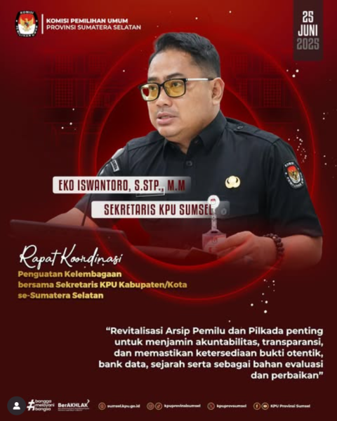 Disampaikan Sekretaris KPU Sumsel dalam rapat penguatan kelembagaan Sekretaris KPU Kab/Kota (25/6/2025).