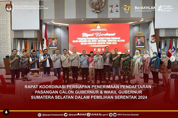 Rapat Koordinasi Persiapan Penerimaan Pendaftaran Pasangan Calon Gubernur & Wakil Gubernur Sumatera Selatan Dalam Pemilihan Serentak 2024