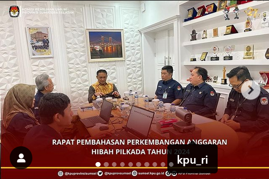 #Temanpemilih, KPU Provinsi Sumatera Selatan melaksanakan rapat perkembangan Anggaran Hibah Pemilihan Serentak Tahun 2024 bersama KPU Kabupaten/ Kota se-Sumatera Selatan secara daring, Selasa (13/8/2024). Turut hadir sebagai narasumber Bapak Rikir, Kasubdit Perencanaan Anggaran Daerah Wilayah II #kpumlayani #pilkadaserentak2024
