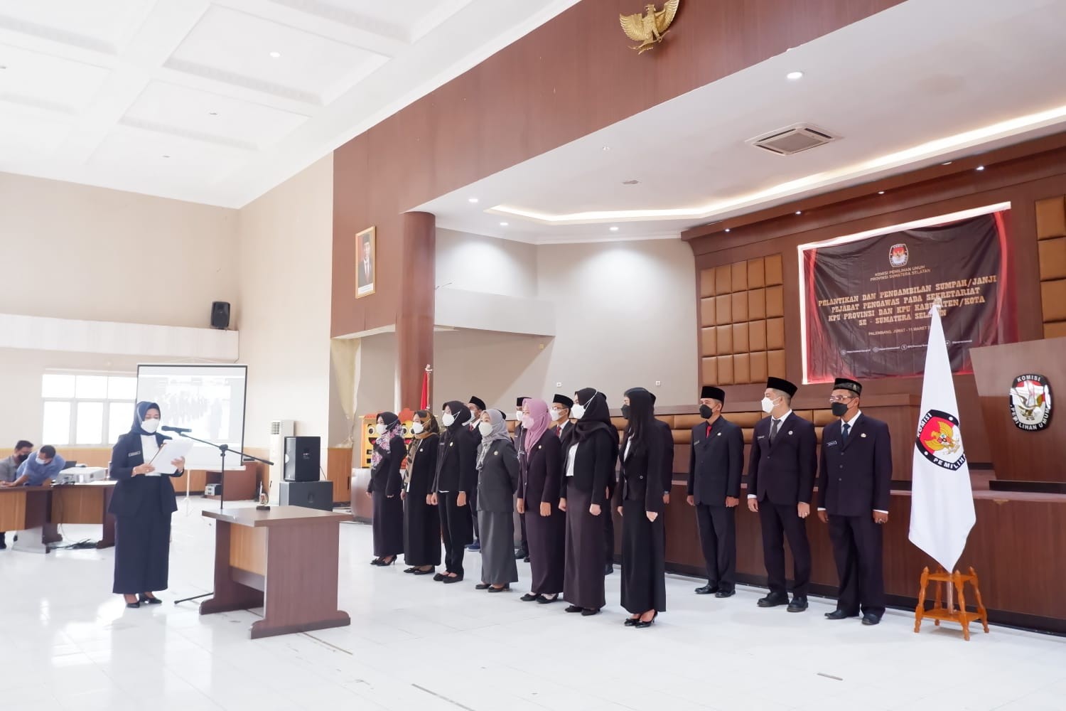 Pelantikan dan Pengambilan Sumpah Janji ini dilakukan oleh Sekretaris KPU Provinsi Sumatera Selatan secara during dan luring yang dihadiri langsung oleh anggota KPU Provinsi Sumatera Selatan. Dalam sambutannya Hj. Haslinda selaku sekretaris KPU Provinsi Sumatera Selatan mengharapkan kepada pejabat yang terlantik untuk bertanggung jawab dalam melaksanakan tugas dan kewajiban.