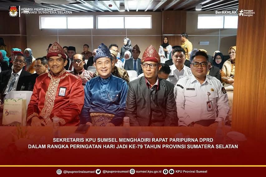 #Temanpemilih Sekretaris KPU Sumsel, Bapak Eko Iswantoro didampingi Kabag Keuangan Umum dan Logistik, Bapak Muhammad Ridho menghadiri Rapat Paripurna DPRD dalam rangka peringatan hari jadi ke-79 Tahun Provinsi Sumatera Selatan, Kamis (15/5/2025).
