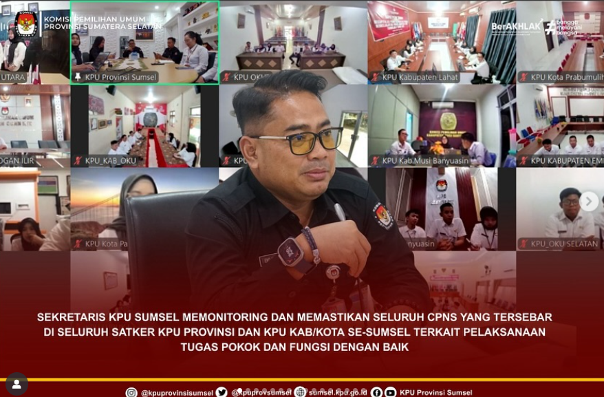 #Temanpemilih Sekretaris KPU Sumsel, Bapak Eko Iswantoro memonitoring dan memastikan seluruh CPNS yang tersebar di seluruh satker KPU Provinsi dan Kabkota se Sumatera Selatan terkait dengan melaksanakan tugas, pokok dan fungsi dgn baik, Rabu (16/7/2025).