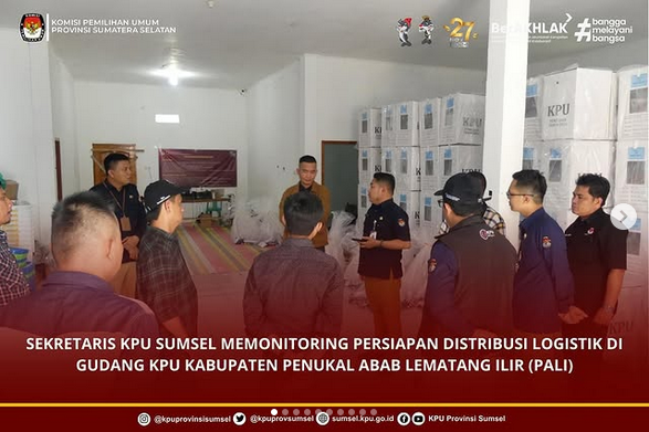 Sekretaris KPU Sumsel, Bapak Eko Iswantoro memonitoring persiapan distribusi logistik yang akan didistribusikan dari Gudang KPU Kabupaten Penukal Abab Lematang Ilir (PALI) menuju Kecamatan-Kecamatan, Minggu (24/11/2024).