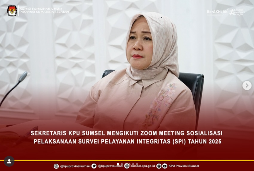 #Temanpemilih Sekretaris KPU Sumsel, Ibu Haslinda mengikuti zoom meeting sosialisasi pelaksanaan Survei Pelayanan Integritas (SPI) tahun 2025, Kamis (31/7/2025).