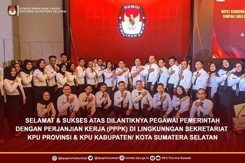 Selamat & Sukses Atas Dilantiknya Pegawai Pemerintah Dengan Perjanjian Kerja (PPPK) di Linggungan Sekreteriat KPU Provinsi & KPU Kabupaten/Kota Sumatera Selatan