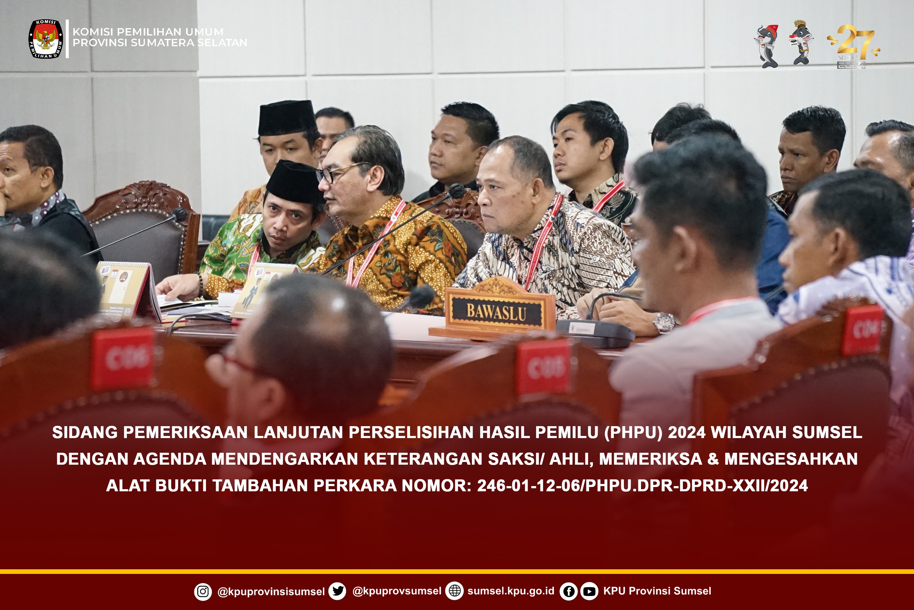 Sidang Pemeriksaan Lanjutan PHPU Wilayah Sumsel Perkara Nomor: 246-01-12-06/PHPU.DPR-DPRD-XXII/2024