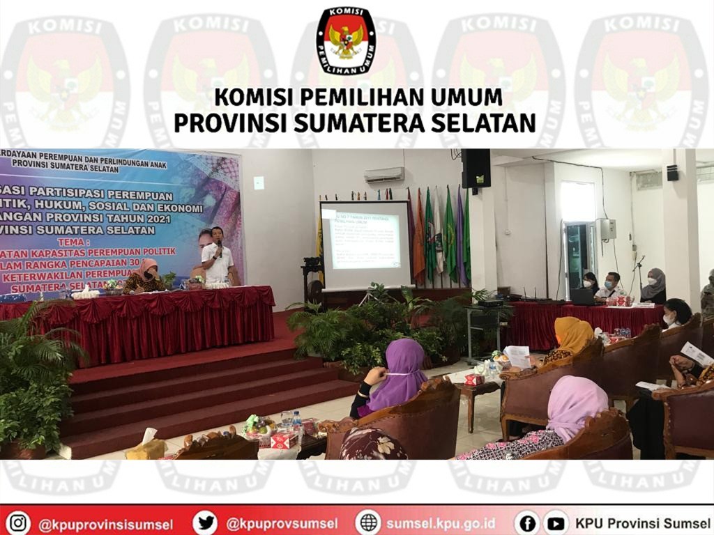 Rabu, 7 Juli 2021 Ketua KPU Provinsi Sumatera Selatan Bapak Amrah Muslimin menjadi Narasumber pada acara Sosialisasi Peningkatan Partisipasi Politik, Sosial, Hukum dan Ekonomi Kewenangan Provinsi Tahun 2021. Acara ini dibuka oleh Wakil Gubernur Sumatera Selatan, Bapak Ir. H. Mawardi Yahya. Tema yang di angkat pada acara ini adalah “Peningkatan Kapasitas Perempuan Politik dalam Rangka Pencapaian 30% Keterwakilan Perempuan Sumatera Selatan 2024”. Acara ini diselenggarakan oleh Dinas Pemberdayaan Perempuan dan Perlindungan Anak di Gedung Perjuangan Wanita Provinsi Sumatera Selatan pada pukul 08.00 WIB s.d selesai, dengan peserta dari perwakilan perempuan dari berbagai Partai Politik yang ada di Sumatera Selatan. #KPUMelayani #KPURI