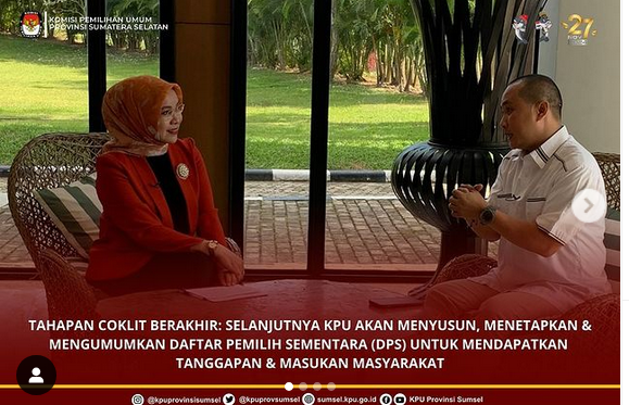 #Temanpemilih, Ketua KPU Sumsel mengapresiasi kinerja Pantarlih yang telah menyukseskan tahapan Pencocokan dan Penelitian (Coklit) data pemilih yang dimulai tanggal 24 Juni dan berakhir 24 Juli 2024.