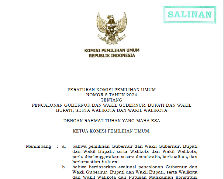 #Temanpemilih Berikut Informasi Jadwal Tahapan Pencalonan Gubernur Dan Wakil Gubernur, Bupati Dan Wakil Bupati, Serta WaliKota Dan Wakil WaliKota berdasarkan Peraturan Komisi Pemilihan Umum Nomor 8 Tahun 2024. Berikut Tahap lengkap tahapan nya :