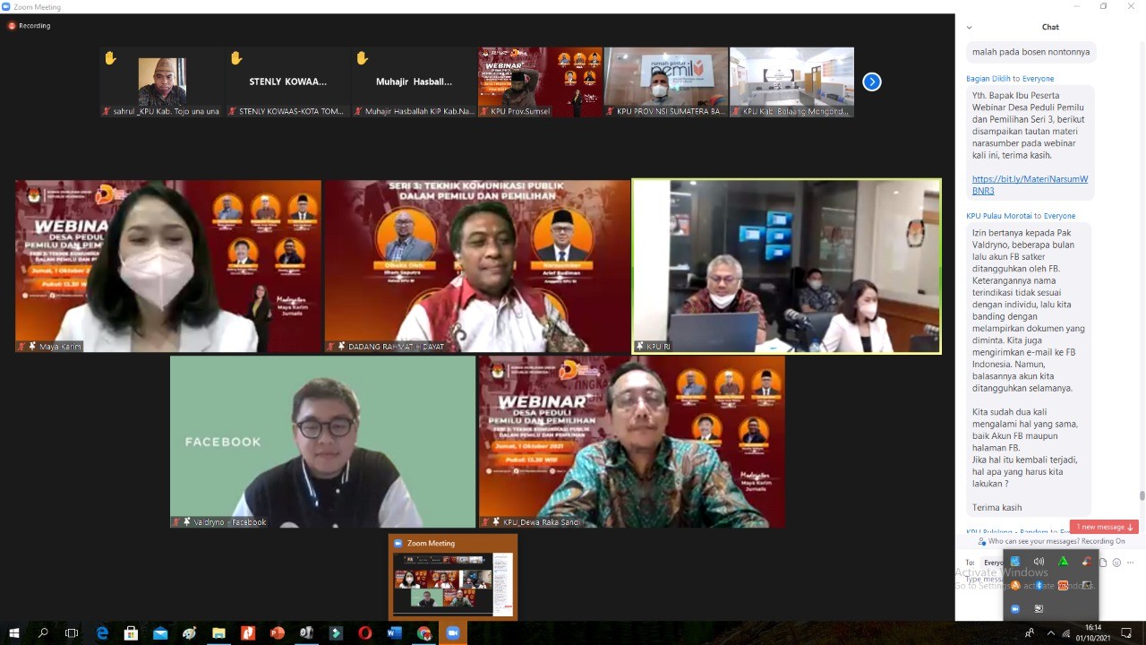 Webinar dibuka secara langsung oleh ketua KPU RI Ilham Saputra secara virtual melalui zoom meeting pada jumat (1/10).