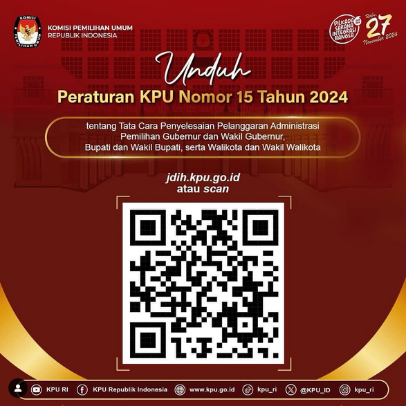 #Repost @kpu_ri #TemanPemilih, KPU telah menetapkan Peraturan KPU Nomor 15 Tahun 2024 tentang Tata Cara Penyelesaian Pelanggaran Administrasi Pemilihan Gubernur dan Wakil Gubernur, Bupati dan Wakil Bupati, serta Walikota dan Wakil Walikota.