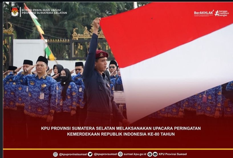 Upacara peringatan Hari Ulang Tahun ke-80 Kemerdekaan Republik Indonesia yang digelar pada 17 Agustus 2025 berlangsung dengan khidmat. Melalui momen ini, KPU Provinsi Sumatera Selatan beserta Jajaran kembali meneguhkan semangat persatuan dan gotong royong dalam mengisi kemerdekaan.