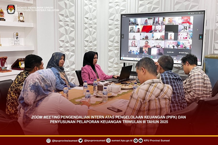 Zoom Meeting Pengendalian Intern atas Pengelolaan Keuangan (PIPK) dan Penyusunan Pelaporan Keuangan Triwulan III Tahun 2025 Bersama KPU Kabupaten/Kota se-Sumsel