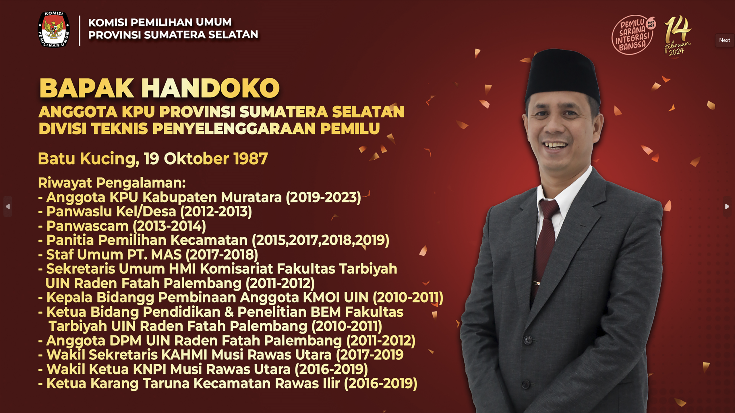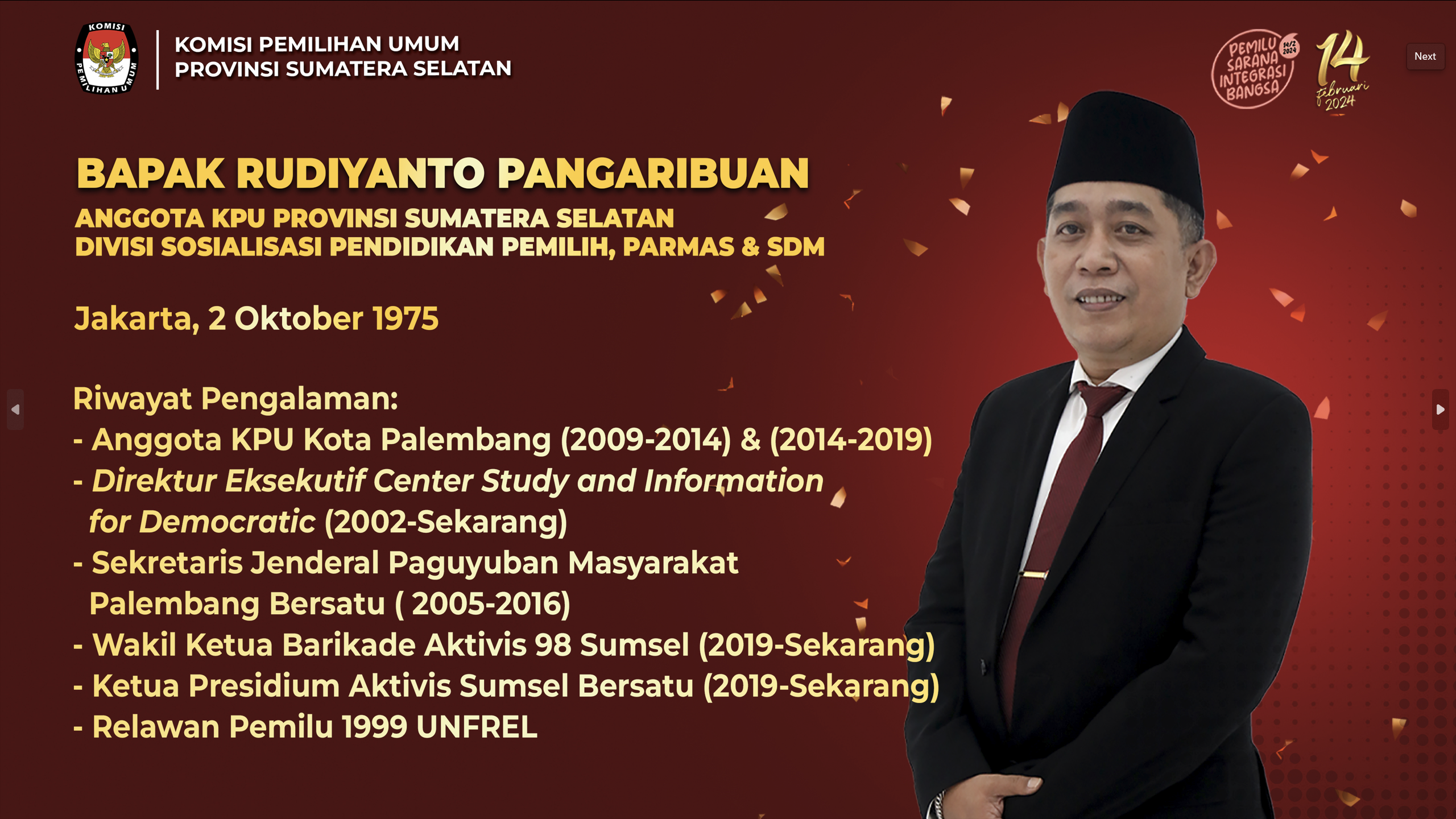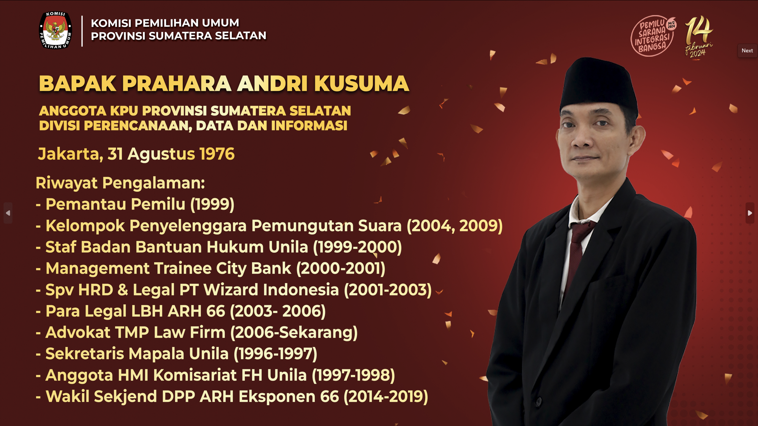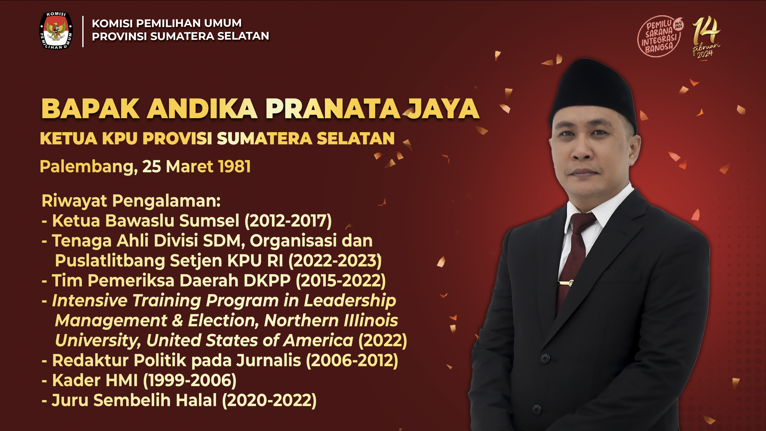 #Temanpemilih, berikut Profil Ketua dan Anggota KPU Provinsi Sumatera Selatan Periode 2023-2028: